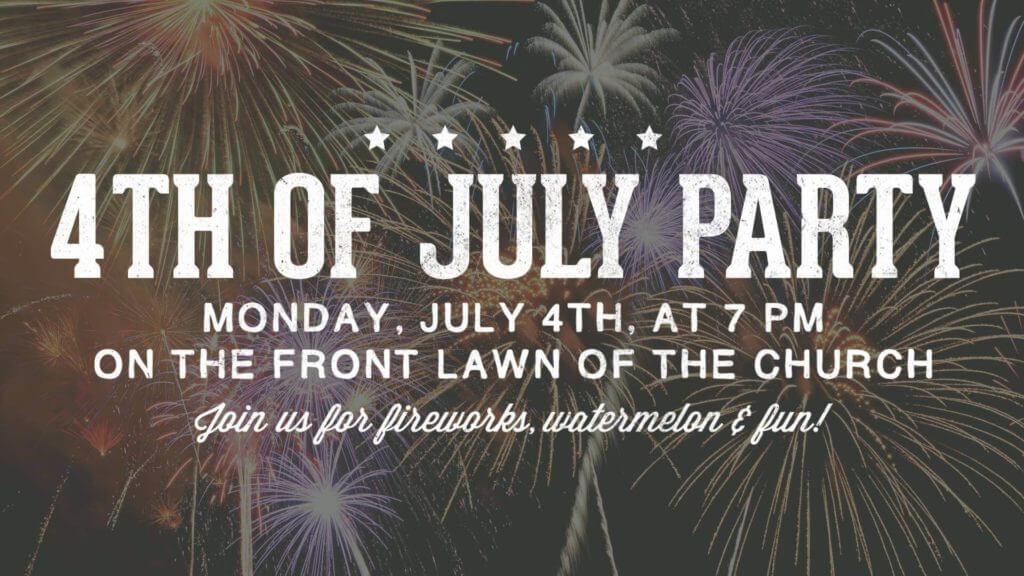 If you haven’t stepped outside lately, I want to let you know that Summer is here in a big way! We have all kinds of exciting events and activities going on for you and your family this Summer here at VFC. Stop by our website’s events page or our Facebook page to stay in the loop on all of what is going on. In particular, make sure you come out to our Independence Day party next Monday, July 4th, starting around 7 PM on the front lawn of the church. We will have games, hot dogs, and a great fireworks show put on by Wynlakes Country Club.