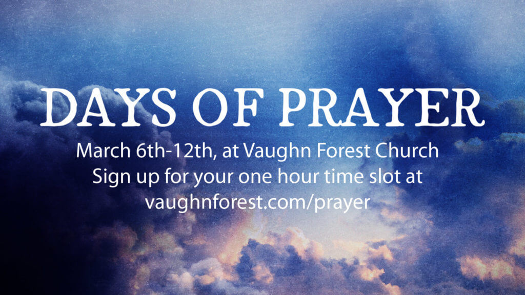 I am also VERY excited about our upcoming Days of Prayer here at VFC! We know that prayer tunes our hearts to the heart of God and when we pray expectantly, God answers is a big way. I hope that each of you will sign up for a one-hour time slot to come up to the church and pray during the Days of Prayer. Simply click the link above to claim your spot and join us in prayer!