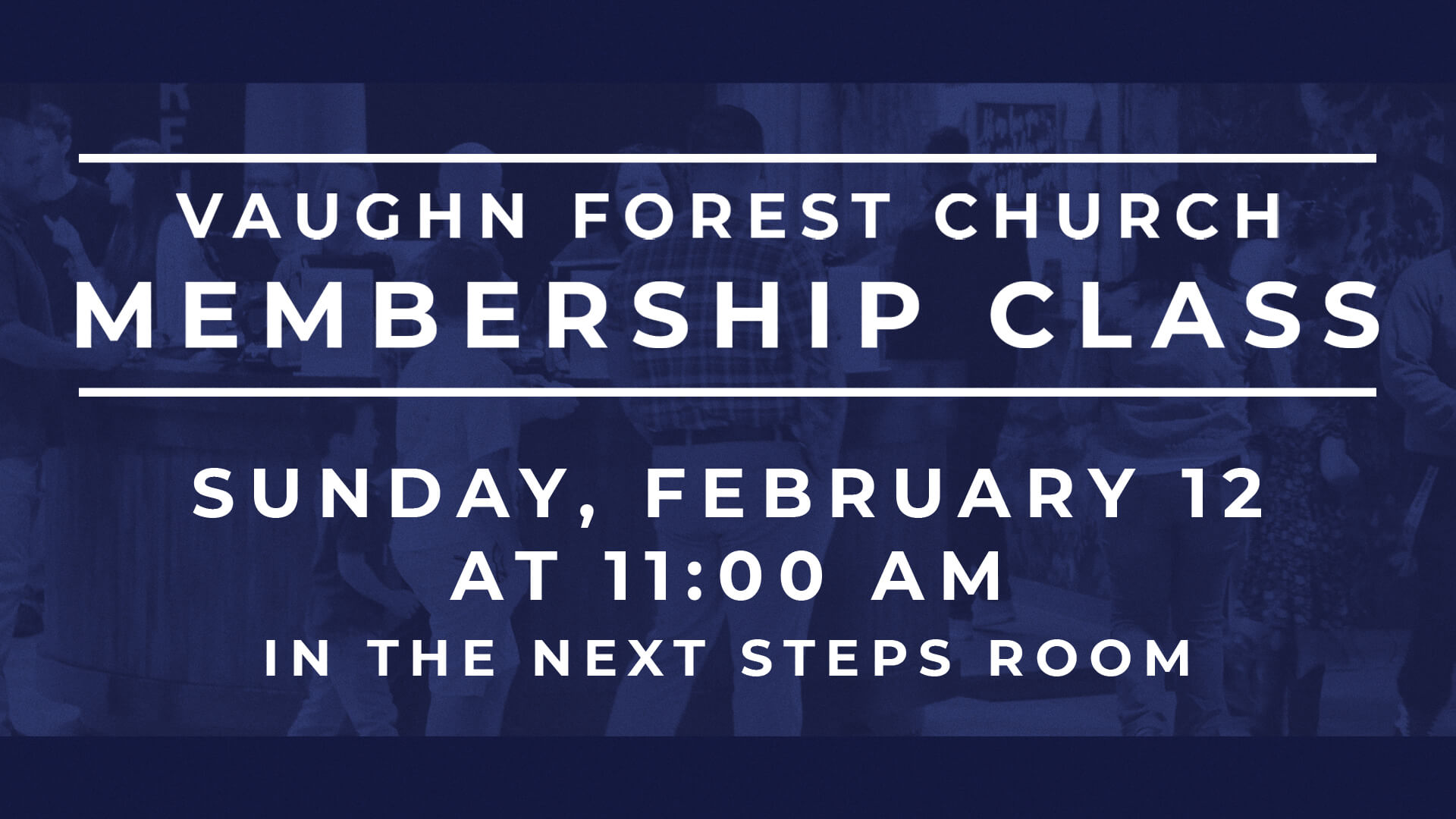 If you are interested in becoming a member of Vaughn Forest Church then we invite you to our next Membership Class on Sunday, February 12, at 11:00 AM in the Next Steps Room. You can sign up for our Membership Class by clicking here.