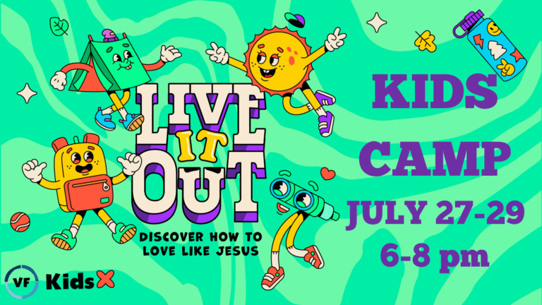 All preschool and elementary kids are invited to LIVE IT OUT at Kids Camp this summer! Kids Camp will be held at Vaughn Forest Church from Sunday, July 27th, to Tuesday, July 29th! Preschool and elementary-aged kids will have a blast each night from 6:00-8:00 PM. We will have games, music, crafts, food, and tons of fun each night as we learn how to love like Jesus! We hope you can join us! Use the links below to register your child or to help volunteer!